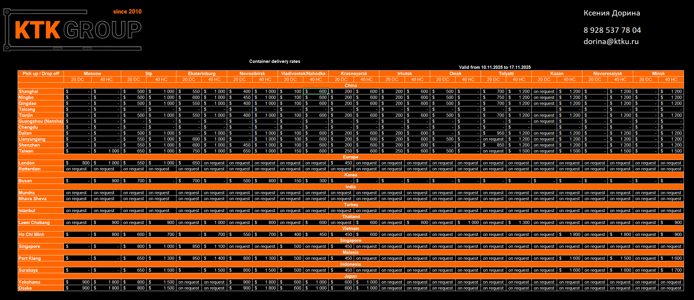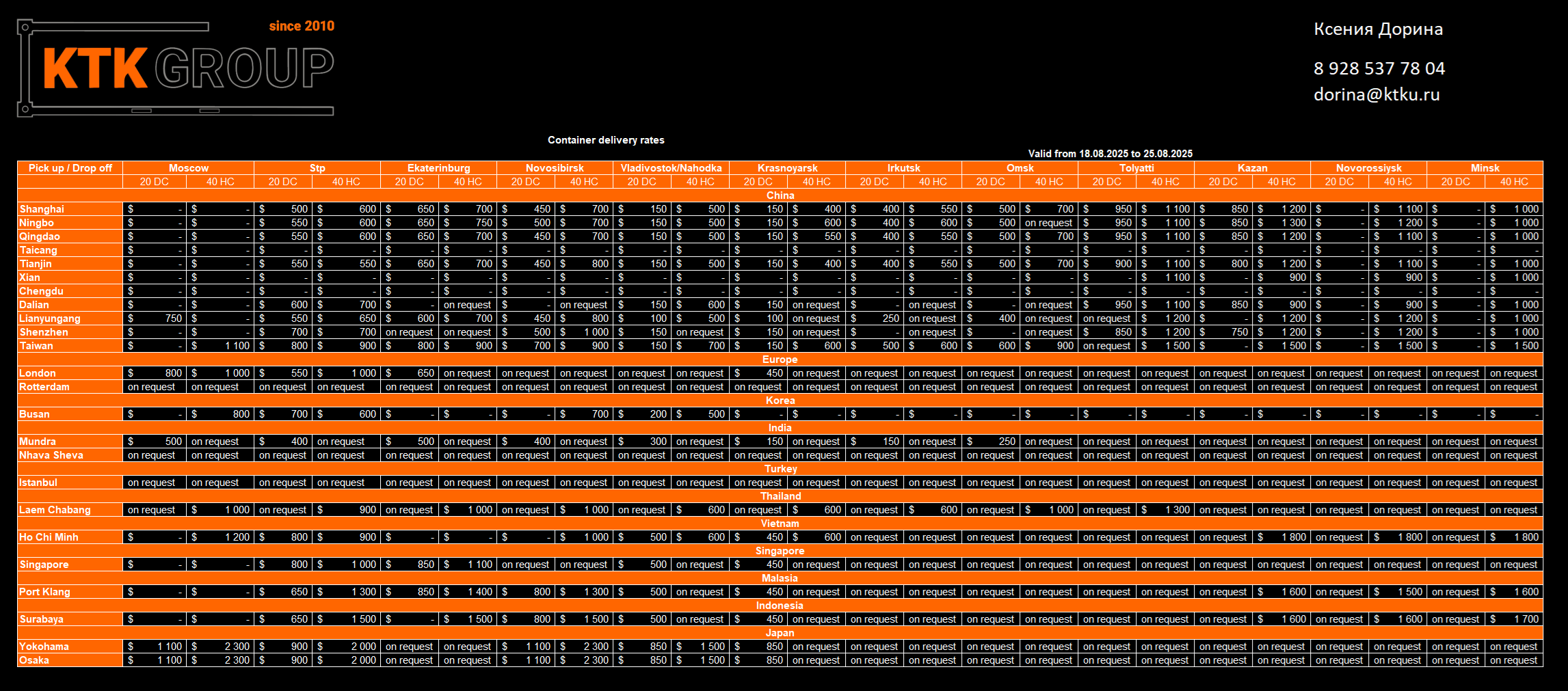 Свяжитесь с нашими менеджерами по электронной почте: sale@ktk-container.ru или телефону: +7 (911) 999-99-84, и они ответят на все ваши вопросы.